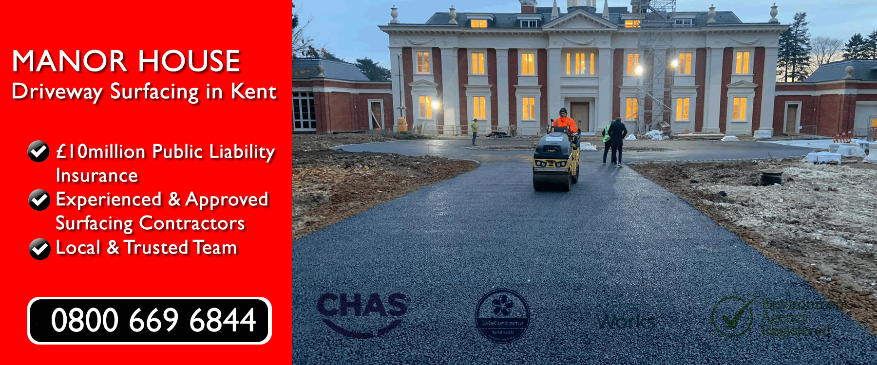 From resurfacing an entire manor house driveway or a farm track to repairing pot-holes in Kent, we’ve got it covered. We offer competitive quotes and pride ourselves on good preparation being key to achieving a quality driveway surfacing finish.