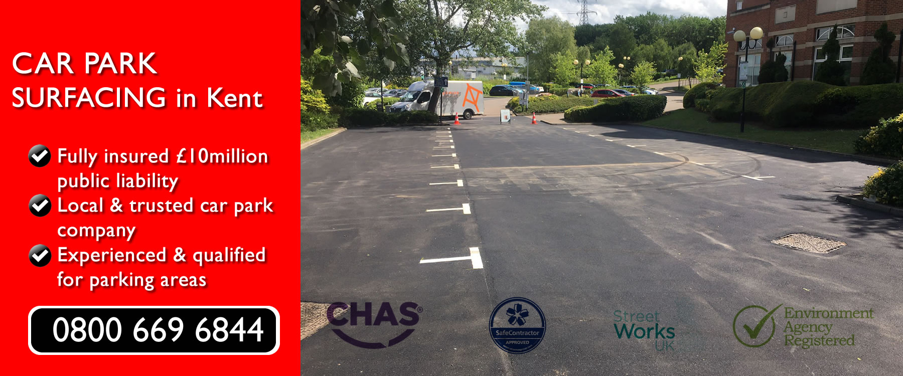 With £10million public liability insurance, competitive prices and a very skilled workforce, we remain the preferred car park surfacing contractors for the Kent area.